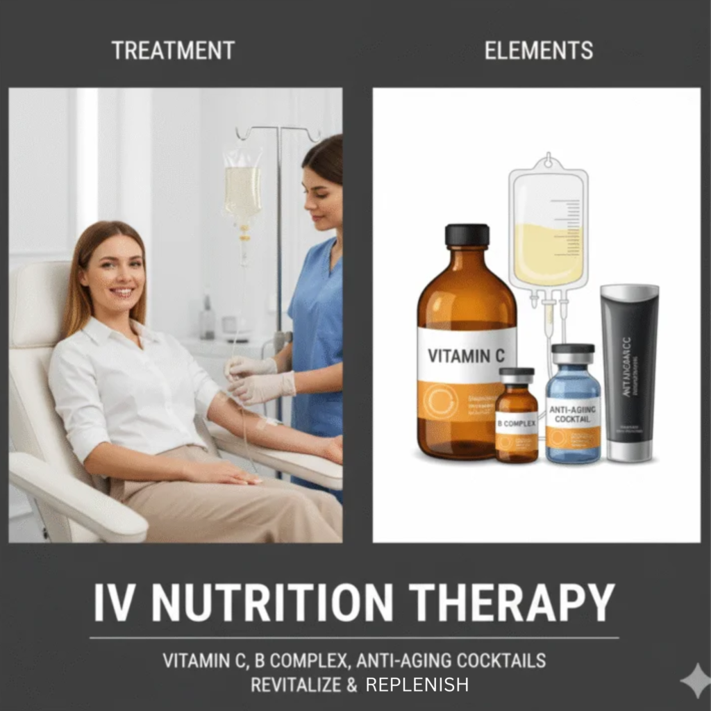 Uses your own blood plasma, rich in growth factors, to stimulate cell renewal. Commonly used for skin rejuvenation, hair regrowth, and reducing under-eye dark circles.